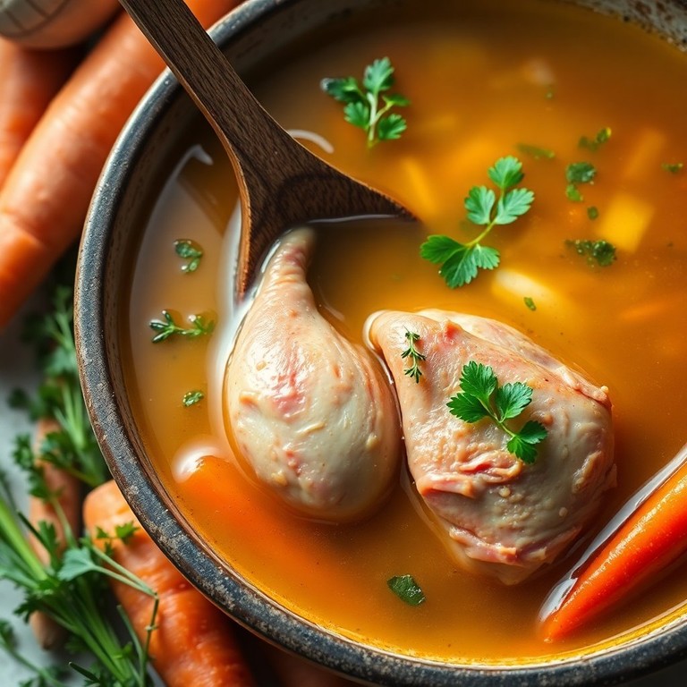 Caldo de Galinha com Pescoço e Ervas Aromáticas