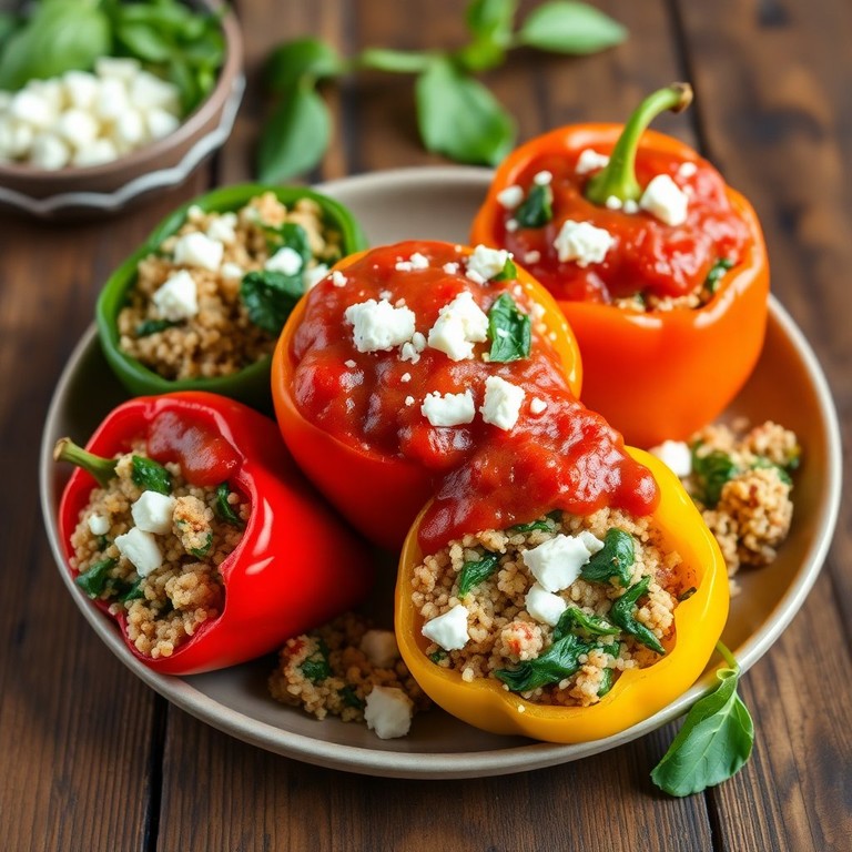 A colorful and satisfying meal loaded with lean protein and healthy fats, these Turkey and Spinach Stuffed Bell Peppers with Feta are perfect for a nutritious dinner. Each pepper is packed with flavor and nutrients, making it a wholesome choice for any meal.