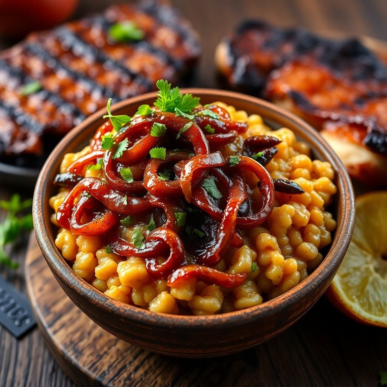 Uma farofa irresistível com cebola caramelizada que traz um toque adocicado ao prato, perfeita para acompanhar churrascos e refeições em família.