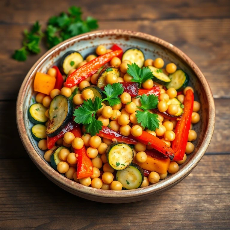 Salada de Grão-de-Bico com Legumes Grelhados e Vinagrete de Limão