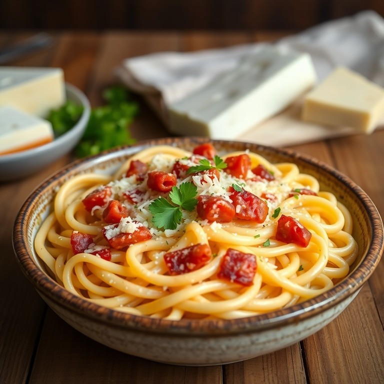 Um prato reconfortante e cheio de sabor, perfeito para um jantar em família ou uma ocasião especial. O macarrão é envolto em um molho cremoso de natas, com o sabor salgado do bacon e a riqueza do queijo, criando uma combinação irresistível.