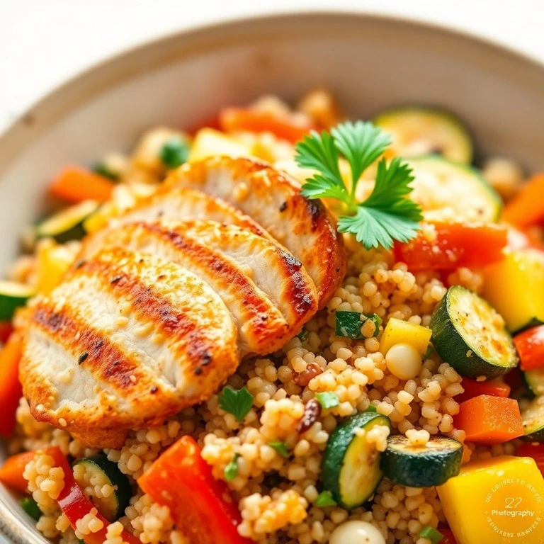 Salada de Quinoa com Frango Grelhado e Legumes Coloridos