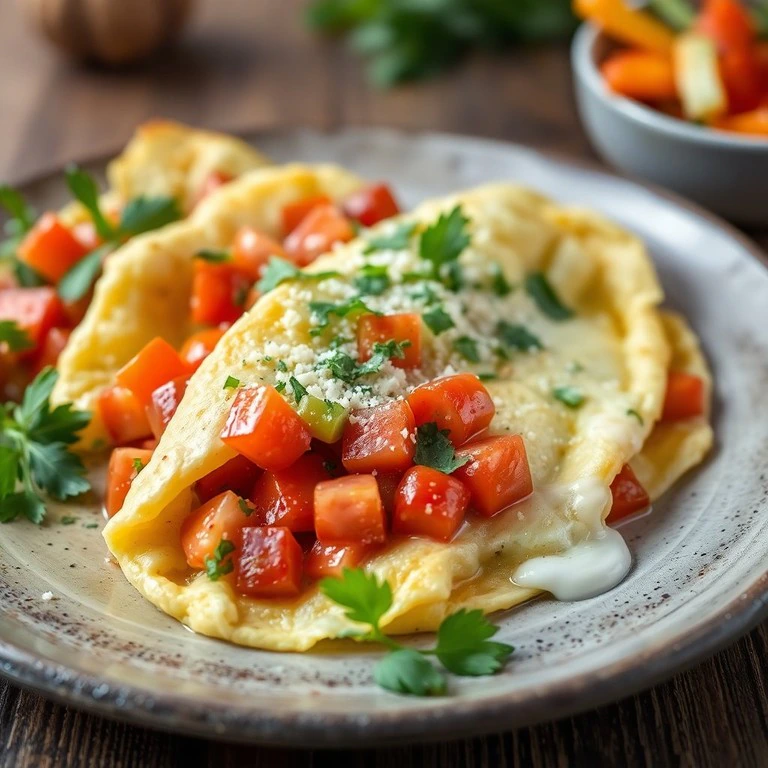 Uma omelete leve e saborosa, perfeita para qualquer refeição. Esta receita combina a frescura do tomate com a cremosidade do requeijão e o sabor do queijo, criando um prato irresistível.