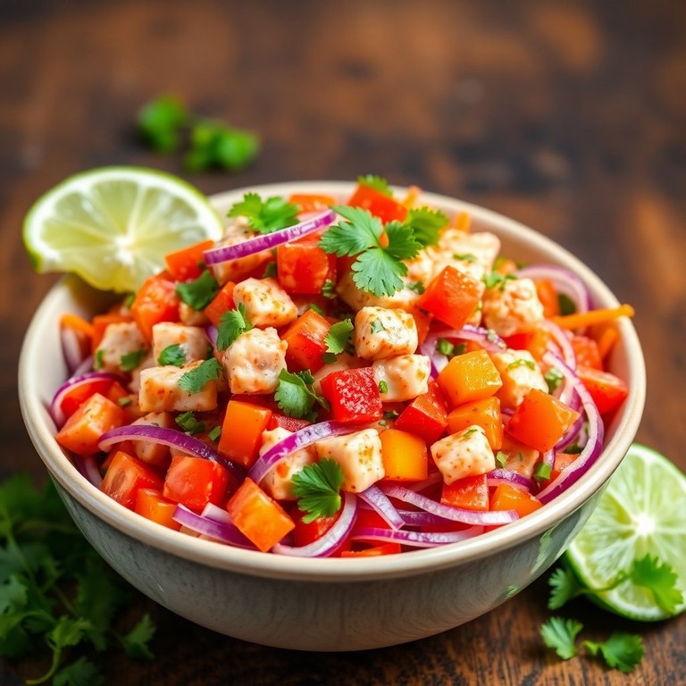 Una fresca y sabrosa ensalada de atún con un toque picante, ideal para un almuerzo ligero o una cena rápida.