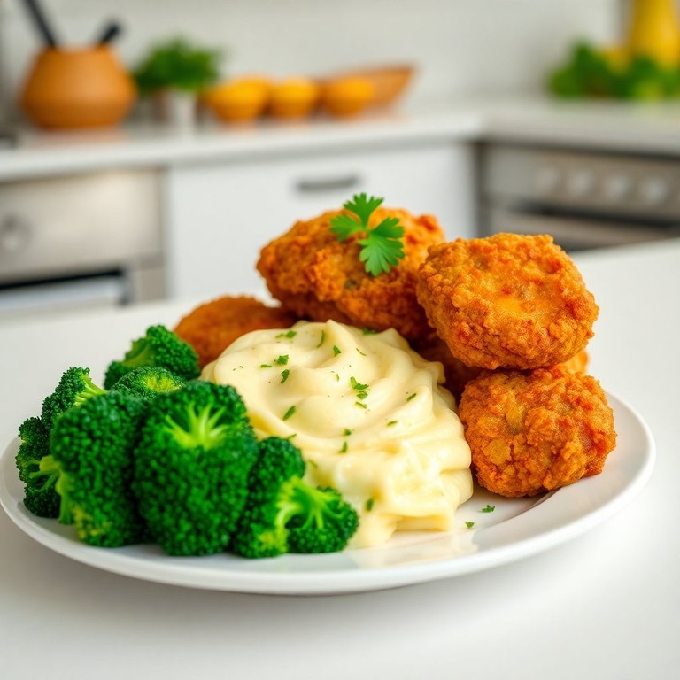 Nuggets de Frango com Purê de Batata e Brócolis