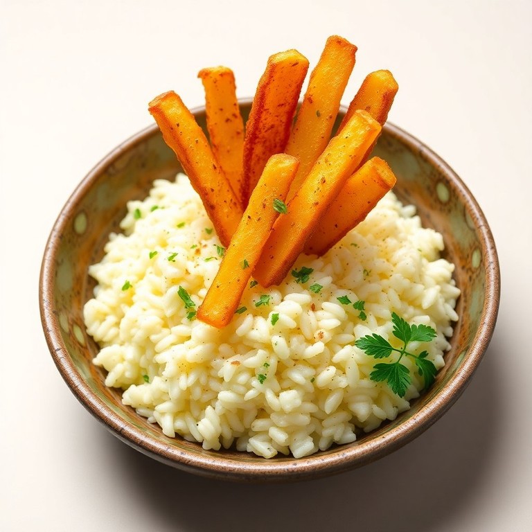 Arroz Cremoso com Batata Palha e Creme de Leite