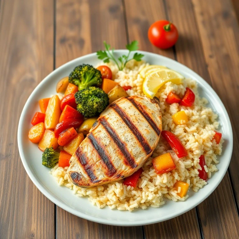 Frango Grelhado com Legumes Coloridos e Arroz de Limão