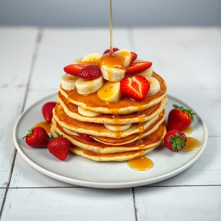 Panquecas leves e doces, recheadas com frutas frescas e cobertas com mel, perfeitas para um café da manhã especial ou uma sobremesa deliciosa.