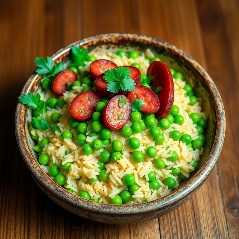 Uma deliciosa mistura de arroz, chouriço e salsicha, perfeita para um almoço em família.