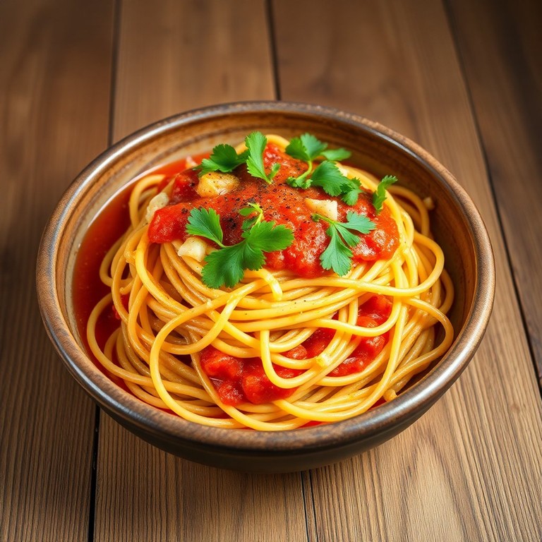 Macarrão ao Alho e Cebola com Molho de Tomate e Coentro