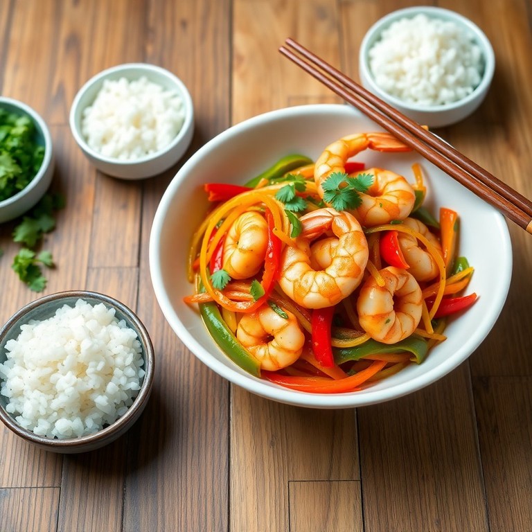 Un plat coloré et savoureux, parfait pour un dîner rapide, alliant la douceur des carottes et des poivrons à la saveur des crevettes.