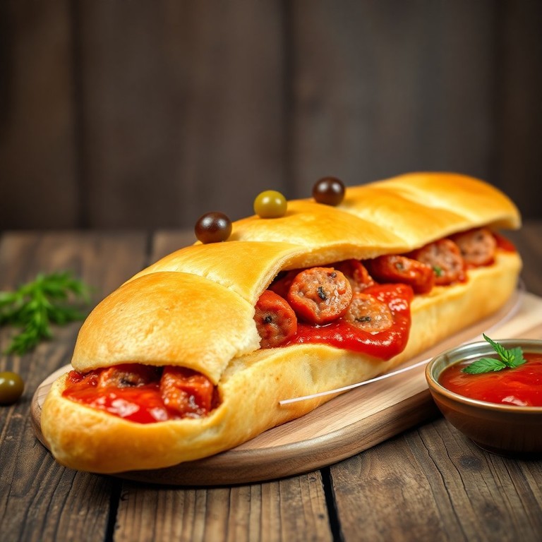 Pão Recheado com Salsicha e Molho de Tomate
