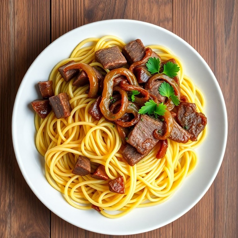 Um prato simples e saboroso, perfeito para os amantes de carne, combinando a leveza do espaguete ao alho e óleo com a suculência do bife acebolado.
