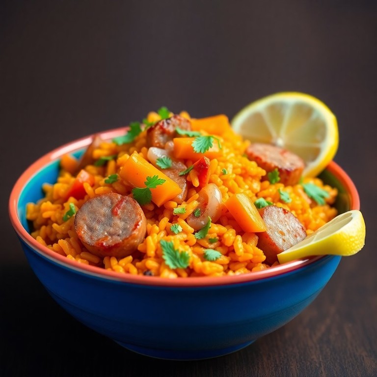 Um prato colorido e saboroso que combina arroz, cenoura e salsicha, perfeito para um almoço em família.