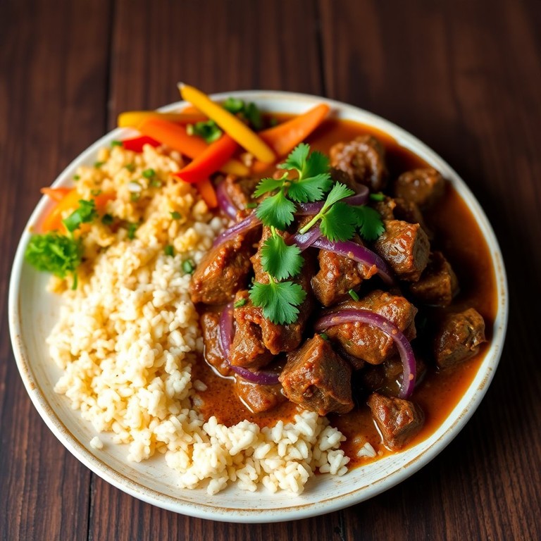 Um prato suculento com cebolas caramelizadas e temperos especiais, perfeito para um almoço em família ou um jantar especial. O colchão mole é cozido lentamente até ficar macio, absorvendo todos os sabores do molho de cebola roxa.