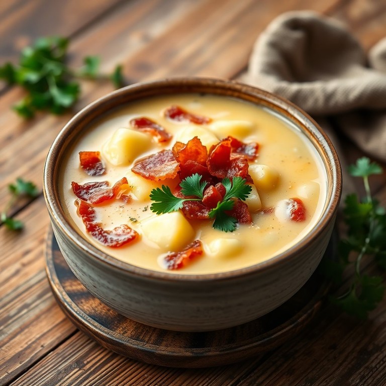 Uma sopa reconfortante e rica, perfeita para dias frios, combinando a suavidade da batata com o sabor intenso do bacon e a doçura da cebola caramelizada.