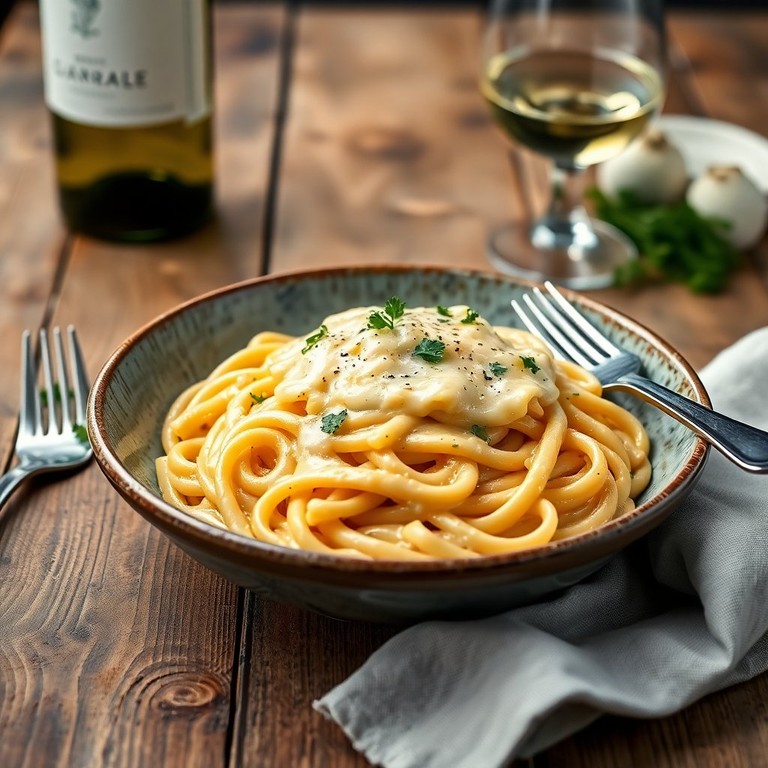 Uma combinação irresistível de macarrão e um molho branco rico e cremoso, perfeito para um jantar especial ou uma refeição reconfortante em família.
