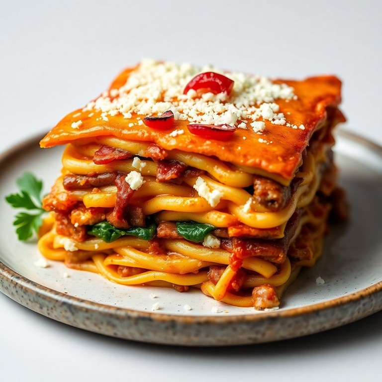 Uma lasanha deliciosa que combina o sabor marcante da calabresa e do bacon com a cremosidade do requeijão e o toque especial do gorgonzola. Uma verdadeira explosão de sabores em cada camada!