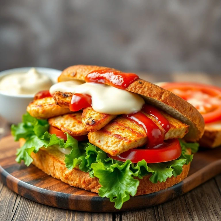 Sanduíche de Frango Grelhado com Maionese e Molho de Tomate