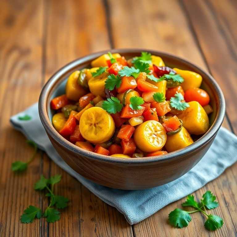 Guineo Verde Salteado con Verduras y Cilantro