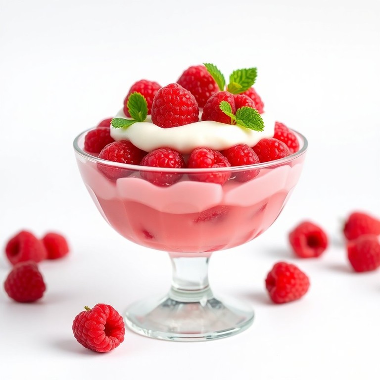 Delícia de Gelatina de Framboesa com Creme