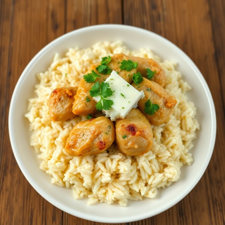Um prato reconfortante que combina arroz soltinho, frango suculento e queijo coalho derretido.