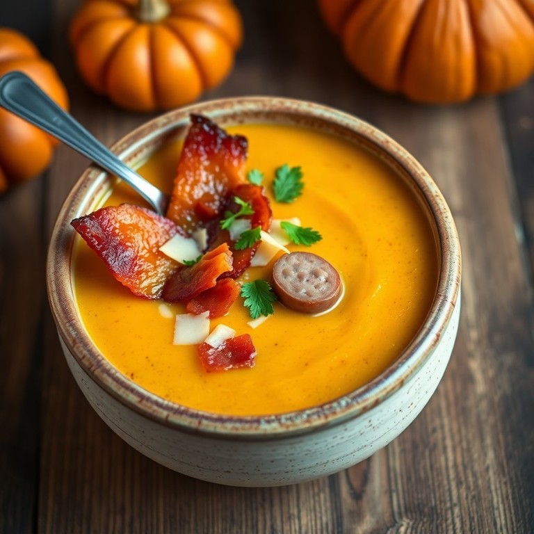 Sopa Cremosa de Abóbora com Bacon e Calabresa