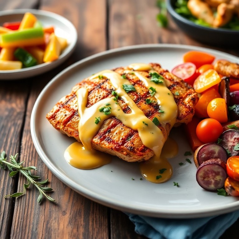 Uma receita leve e saborosa, ideal para um almoço saudável, onde o frango grelhado é complementado por um molho cremoso de mostarda e mel, trazendo um equilíbrio perfeito entre o doce e o salgado.