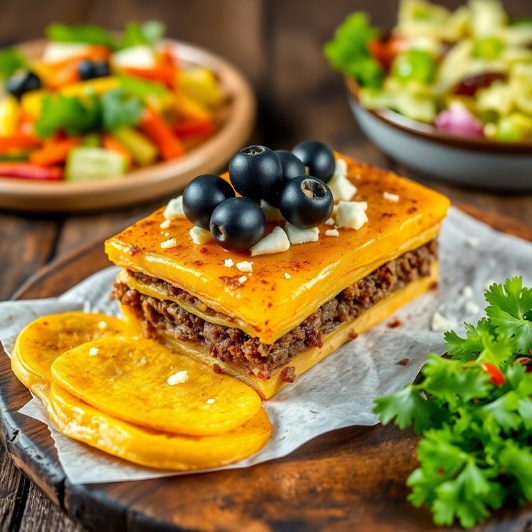 Una deliciosa combinación de plátano maduro y carne molida, horneada a la perfección, ideal para compartir en familia.