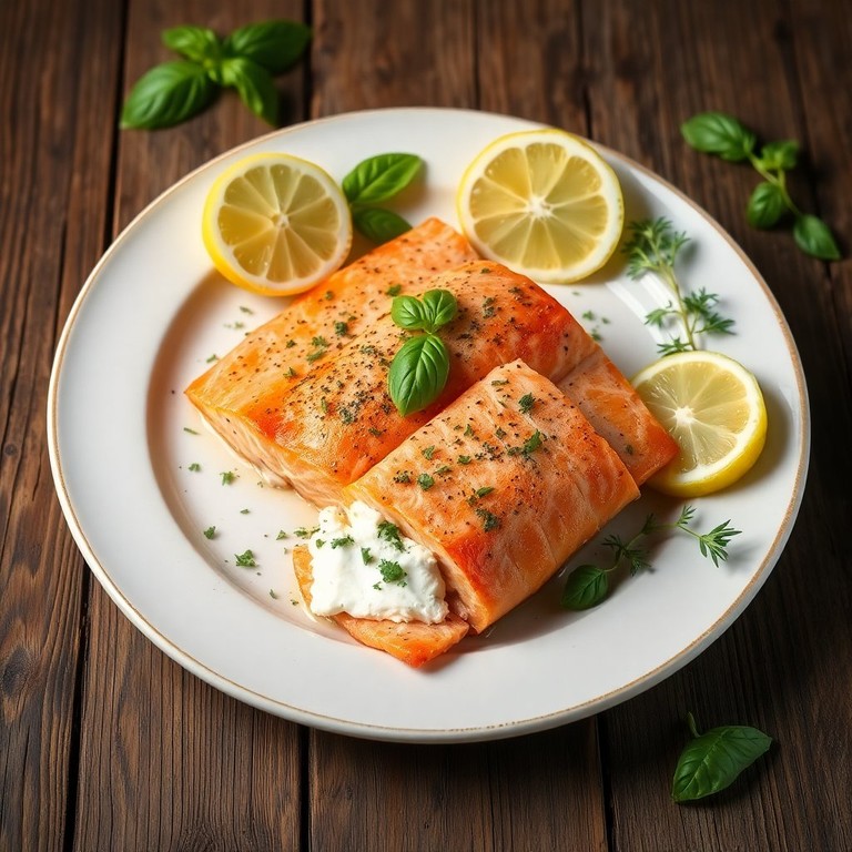 Salmão Recheado com Cream Cheese e Manjericão