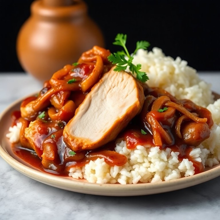 Una deliciosa combinación de pollo tierno y cebolla dulce, sazonada con sillao y especias.