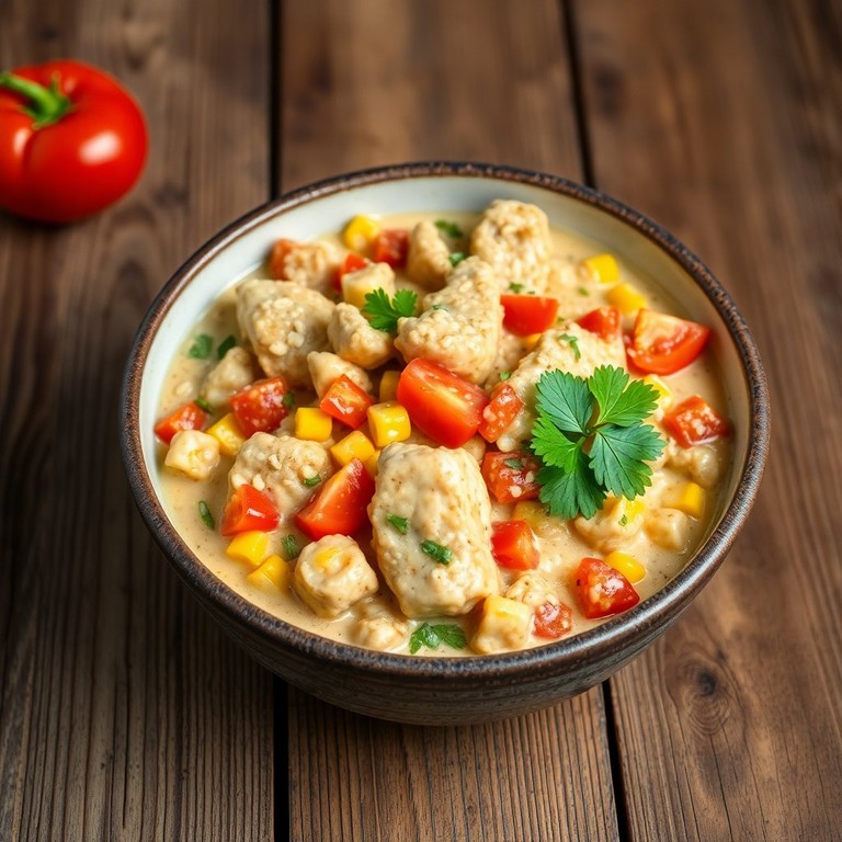Uma deliciosa combinação de frango, creme de leite e aveia, perfeita para um almoço reconfortante.
