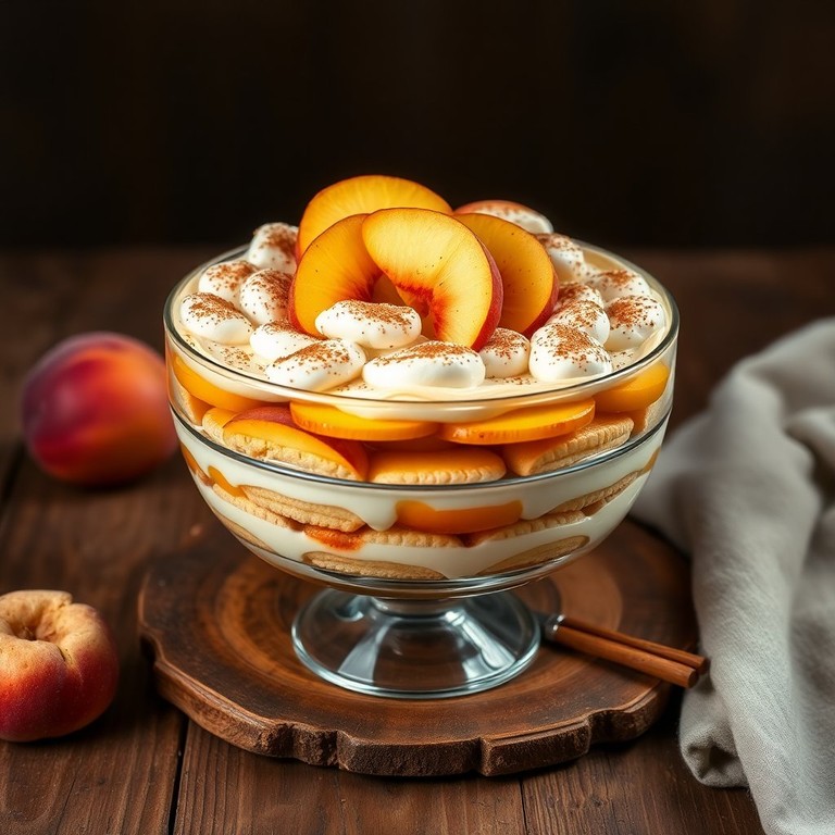 Uma sobremesa cremosa e refrescante que combina a doçura do pêssego em calda com a leveza da bolacha champanhe.