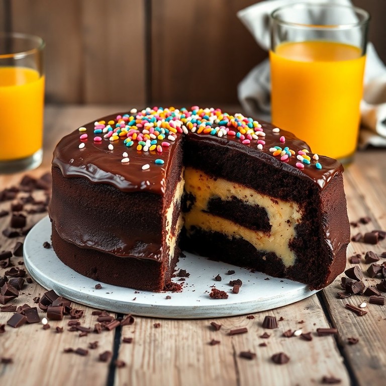 Um bolo fofinho e irresistível, perfeito para qualquer ocasião! Este bolo de chocolate é recheado com um creme de leite suave e coberto com granulado colorido, tornando-o uma escolha perfeita para festas e celebrações.