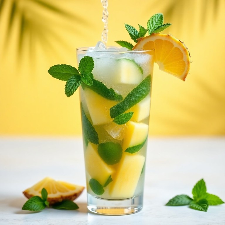 Uma refrescante mistura de rum, hortelã e abacaxi que traz o sabor do verão para sua cozinha.