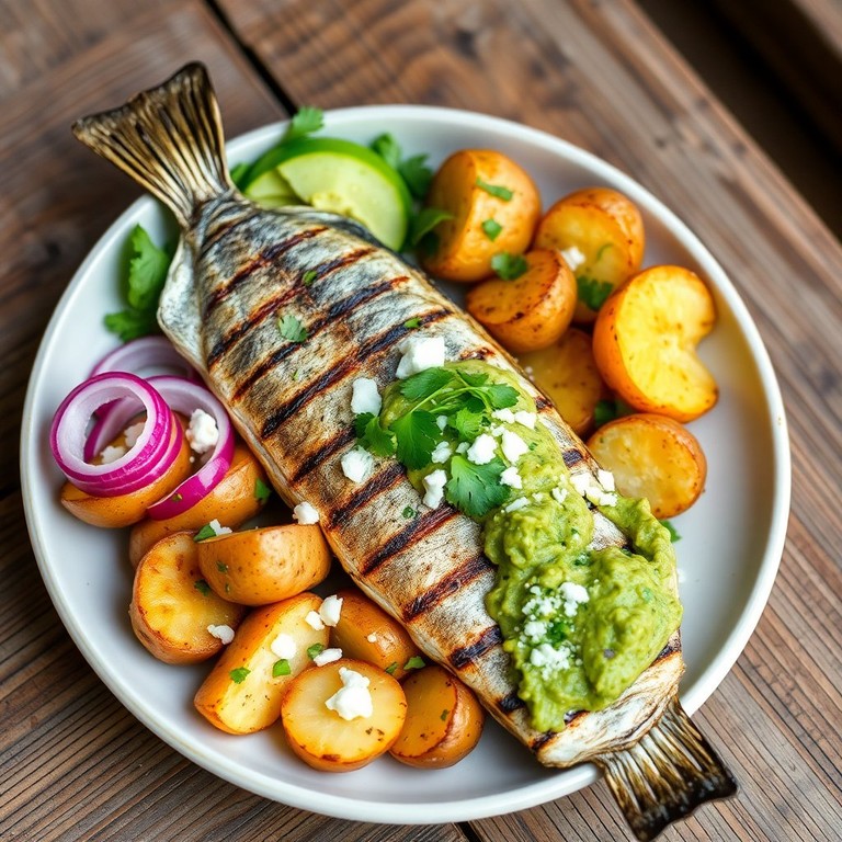 Filete de Caballa a la Parrilla con Patatas Baby y Guacamole