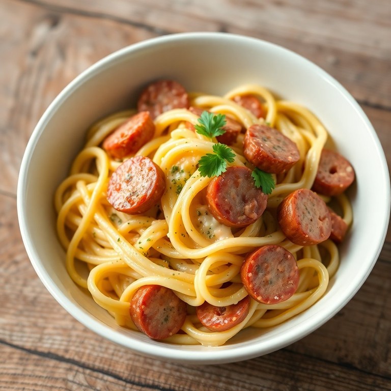Uma combinação irresistível de macarrão e calabresa em um molho cremoso, perfeita para um jantar aconchegante.