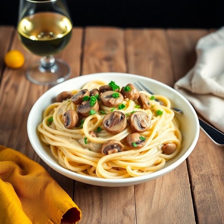 Uma combinação perfeita de macarrão e champignon em um molho branco irresistível, ideal para um jantar especial ou uma refeição reconfortante.