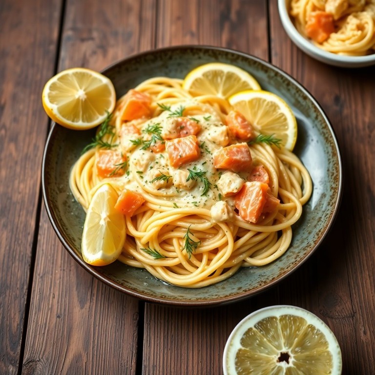 Des pâtes crémeuses et savoureuses, rehaussées de saumon fumé et d'une note de gingembre.
