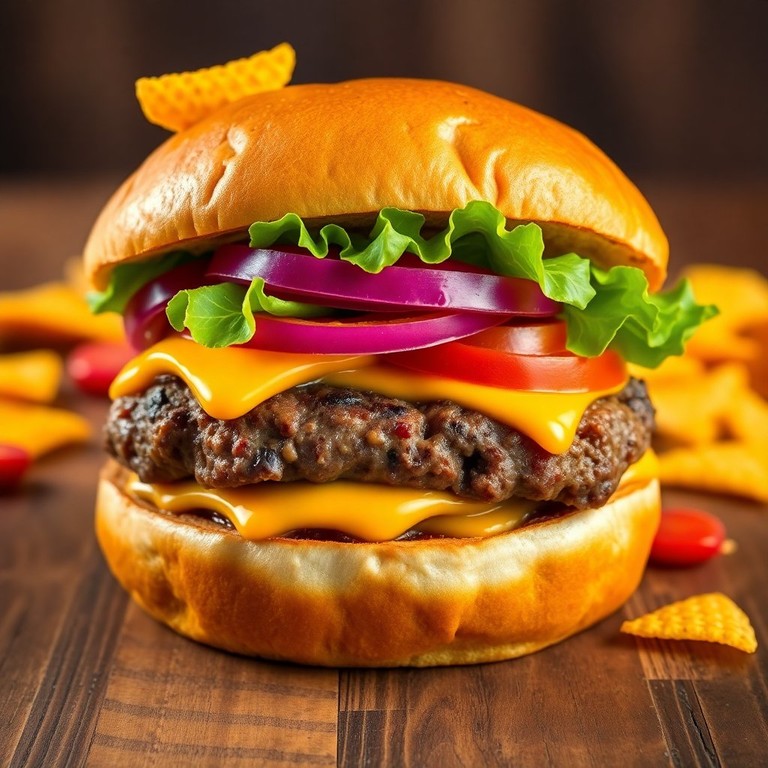 Um hambúrguer irresistível que combina a suculência da carne com a crocância dos Doritos, perfeito para quem busca um lanche cheio de sabor e textura.