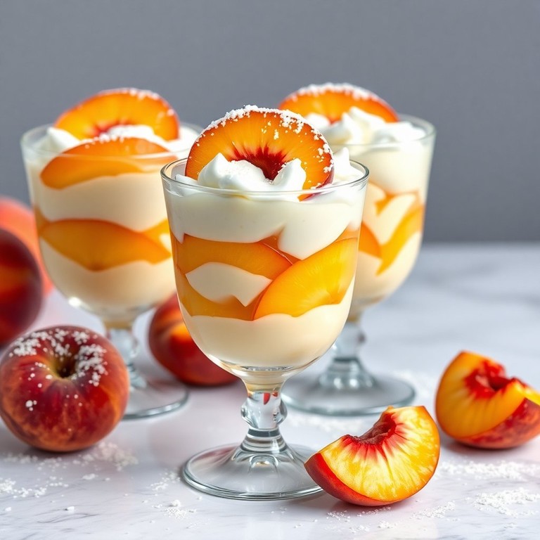 Uma sobremesa suave e cremosa que combina pêssegos frescos com um toque de leite condensado.
