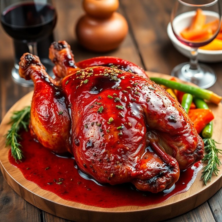 Uma explosão de sabor com marinada de 24 horas e especiarias marcantes, este chester ao vinho tinto é perfeito para ocasiões especiais.