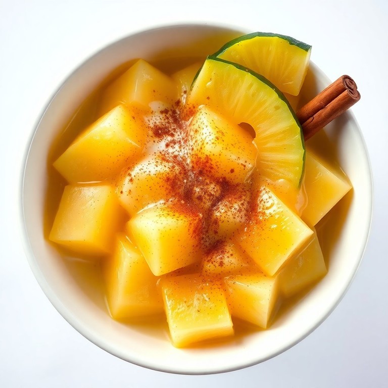 Uma deliciosa mistura de abacaxi cozido com leite condensado, um toque de canela e açúcar, perfeita para sobremesas ou lanche.