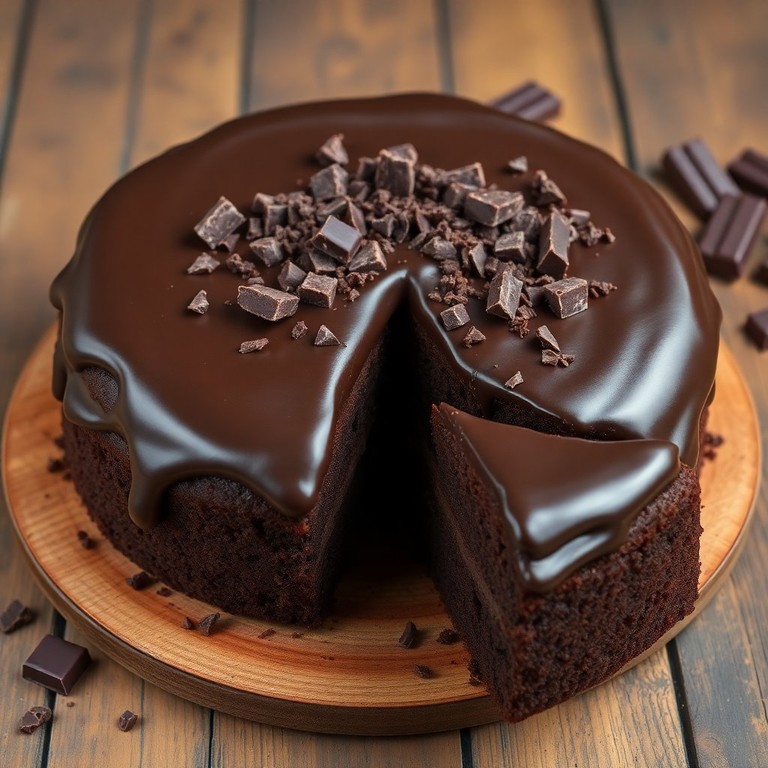 Bolo de Chocolate Úmido com Cobertura de Ganache e Chocolate em Barra