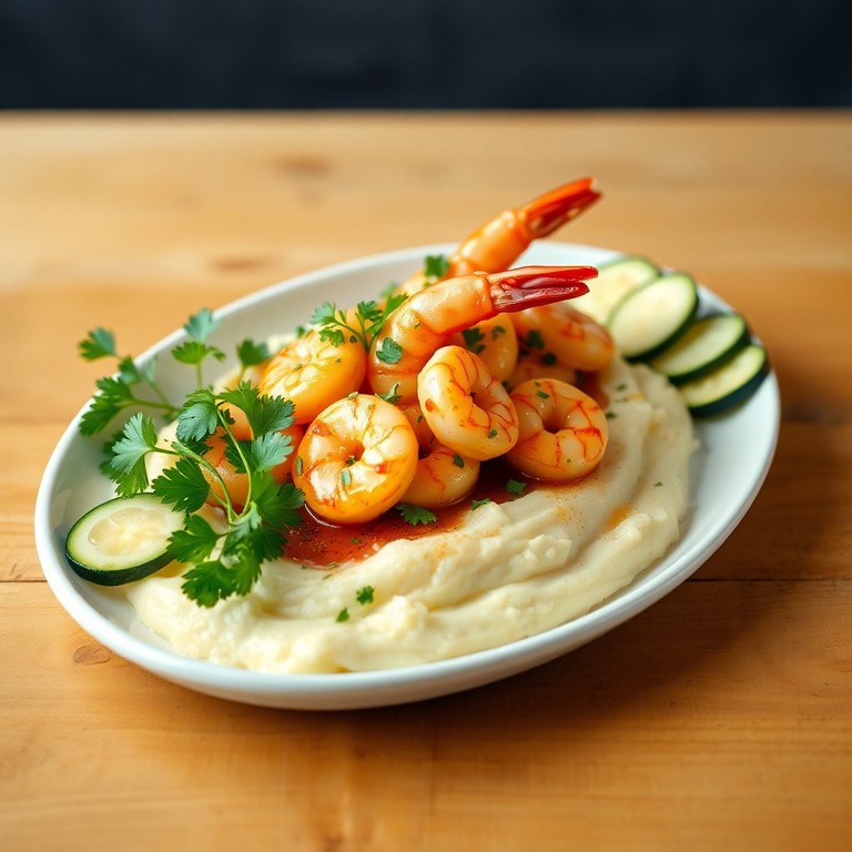 Un plato ligero y nutritivo que combina la frescura de los camarones con un delicioso puré cremoso.
