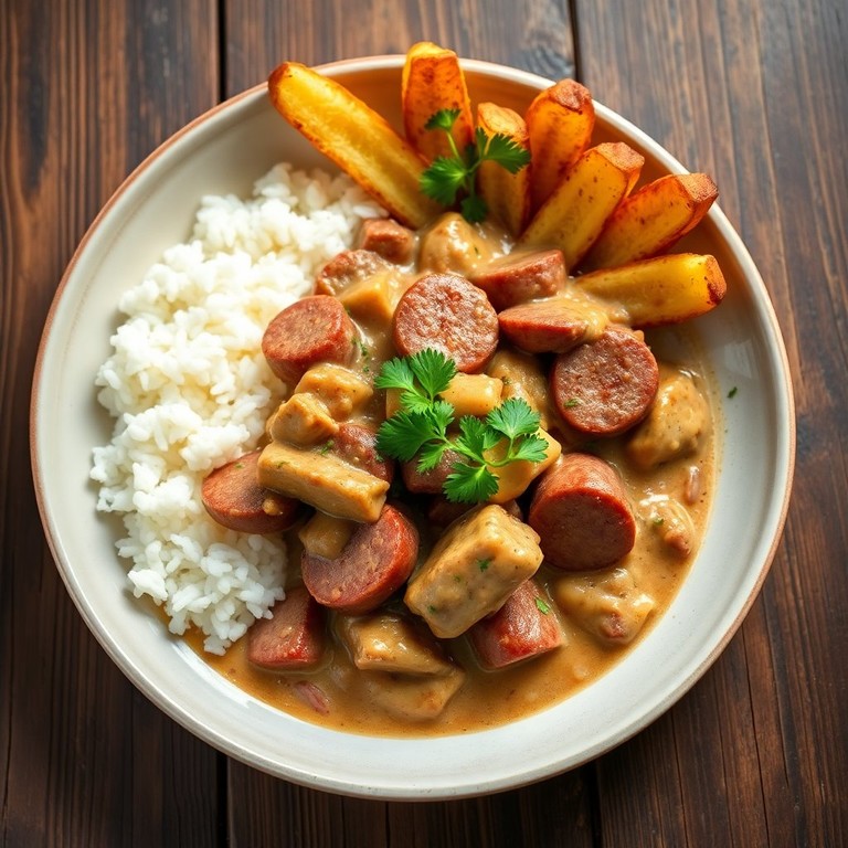 Uma versão inovadora do clássico strogonoff, com a adição de linguiça para um toque especial.