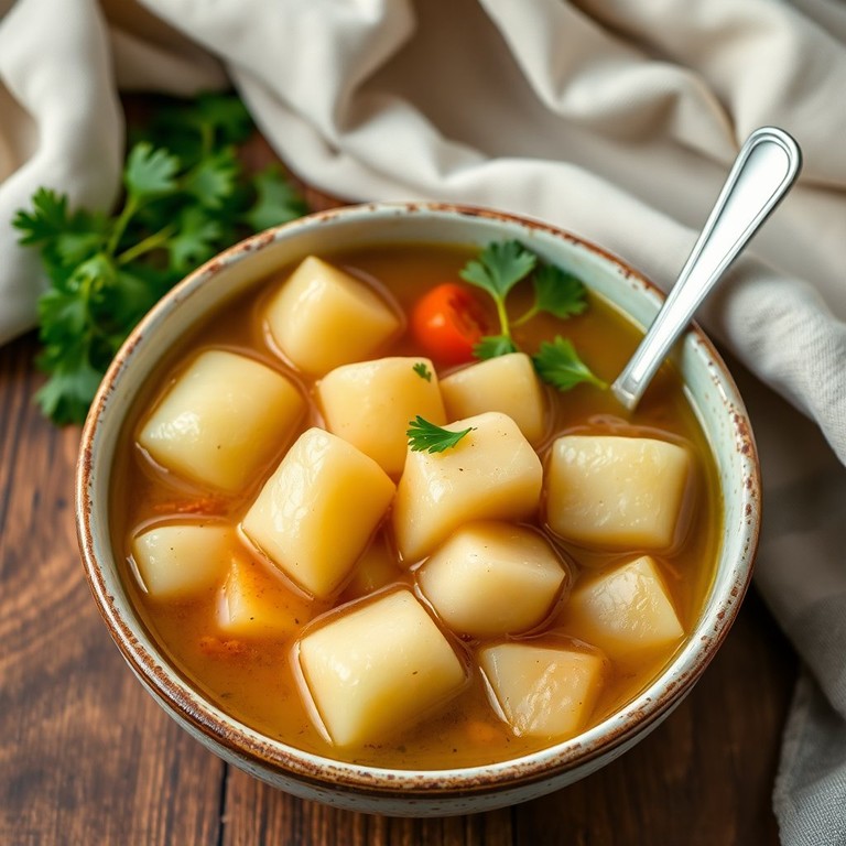 Uma combinação reconfortante de batatas cozidas em um saboroso caldo de legumes, perfeita para aquecer o corpo e a alma.