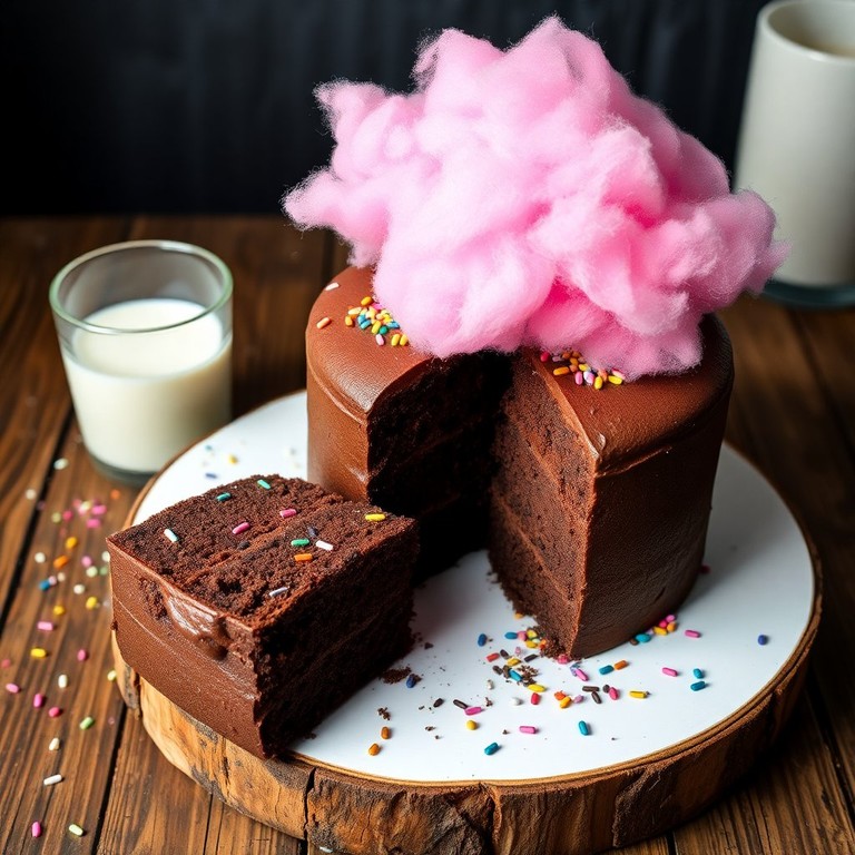 Um bolo de chocolate irresistível que combina a riqueza do chocolate com a leveza e doçura do algodão doce, criando uma sobremesa mágica e única.
