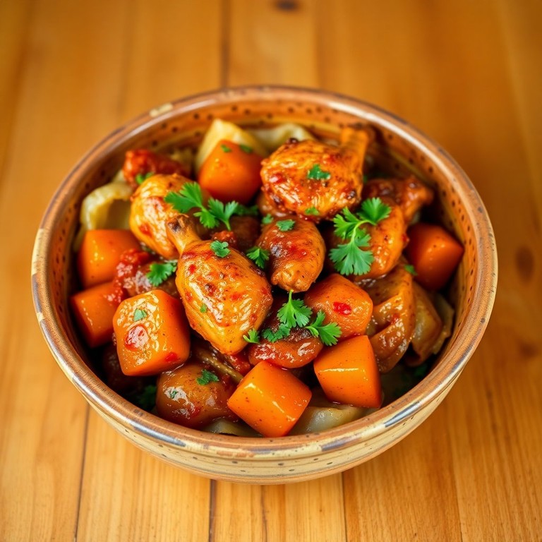 Um prato saudável e reconfortante que combina o sabor do frango com a doçura da batata doce e a crocância do repolho, temperado com especiarias aromáticas que proporcionam uma explosão de sabores.
