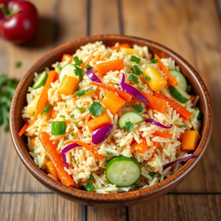 Uma mistura vibrante de arroz e legumes frescos, perfeita para qualquer refeição. Este prato é não apenas delicioso, mas também cheio de cores e nutrientes, ideal para acompanhar carnes ou ser servido como prato principal.